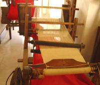 Hainan Li people's brocade: Single-breadth dragon bedcover with the design of a pair of cranes